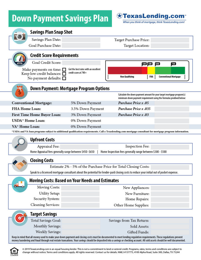 Use our Down Payment Savings Plan printable guide to help you set a goal for saving to buy a home.