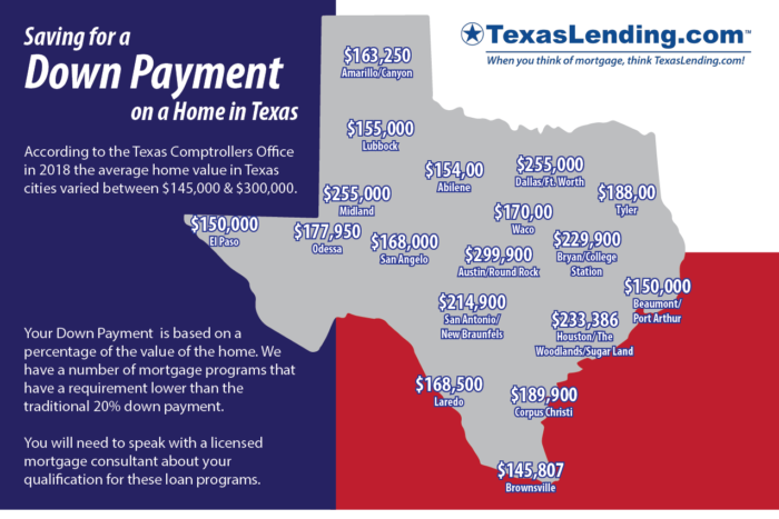 At TexasLending.com we have low down payment mortgage options available ranging from a 5% to 0% minimum down payment.